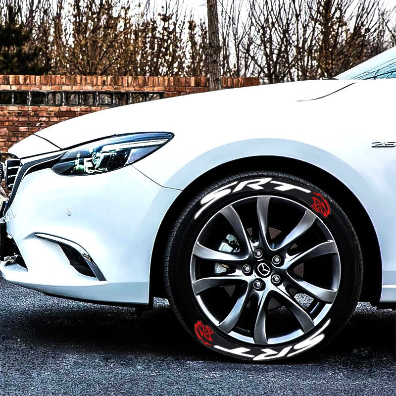 Personalize your tires with these bold English letter 3D tire stickers. Made of durable PVC, each main-pattern sticker applies easily using adhesive backing for a secure, lasting fit. The 3.5cm high raised letters create a striking look for any vehicle. Sold as a set for 4 wheels, ideal for SRT branding.